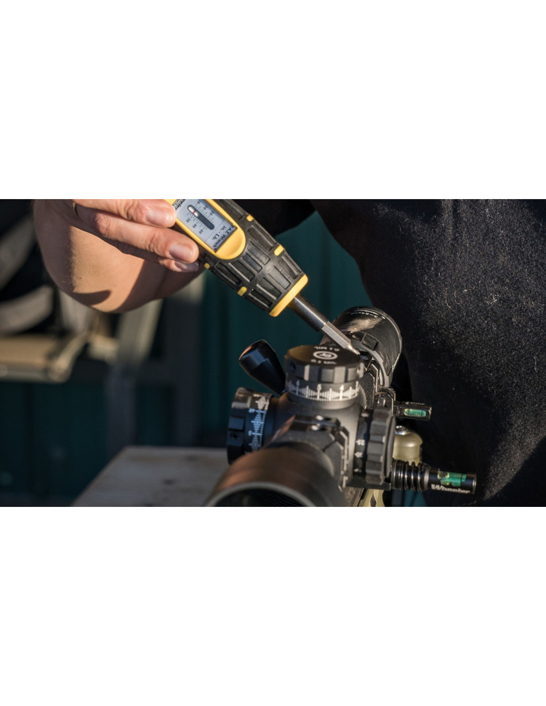 Destornillaor electrico de presión, tiene un indicador para comprobar la presion con la que estamos apretando los tornillos. Ajustes desde 10 inch a 65 inch pound, con una precision de +/- 2 inch pound Ideal para los tornillos de las bases, anillas y visores. Incluye 10 puntas, valido para la mayoria de los tornillos que usamos habitualmente en las armas. Puntas incluidas: #10 flat blade bit #11 flat blade bit #32 flat blade bit 3/32" Allen bit 7/64" Allen bit 5/32" Allen bit T15 Torx bit T20 Torx bit Square drive adapter bit Instrucciones en Ingles: http://www.btibrands.com/wp-content/uploads/bti_uploads/553556-FAT-Wrench-instructions.pdf