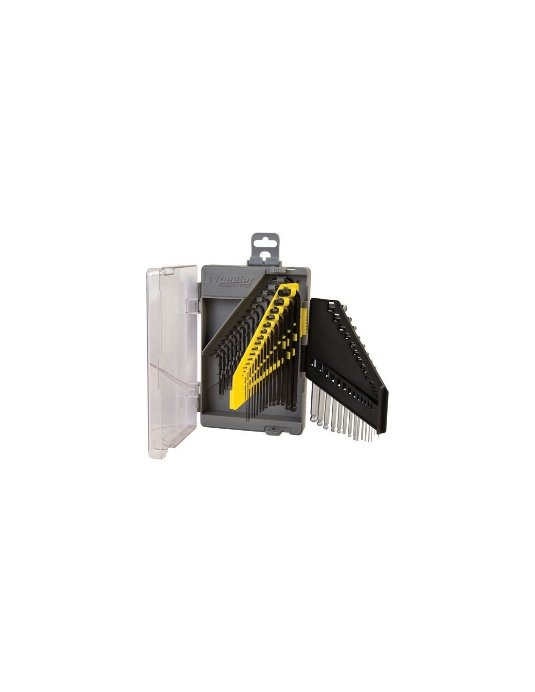 Llaves Hexagonales en kit 45 uni. WheelerAlmacene todos sus juegos de llaves en un solo lugar con el juego de llaves Wheeler de 45 piezas. Este conjunto compacto ocupa poco espacio en su mesa de trabajo y le permitirá almacenar todas las llaves SAE, métricas hexagonales y Torx juntas. Nunca más tendrá que buscar alrededor para tamaños diferentes o impares, simplemente abra su kit, pase a la página que necesita y continúe trabajando.SAE Hex (.028 in, .035 in, .05 in, 1/16 in, 5/64 in, 3/32 in, 7/64 in, 1/8 in, 9/64 in, 5/32 in, 3/16 in, 7/32 in, 1/4 in, 5/16 in, 3/8 in)Metric Hex (.7mm, .9mm, 1.3mm, 1.5mm, 2mm, 2.5mm, 3mm, 4mm, 4.5mm, 5mm, 5.5mm, 6mm, 7mm, 8mm, 10mm)Torx (T1, T2, T3, T4, T5, T6, T7, T8, T9, T10, T15, T20, T25, T30, T35)