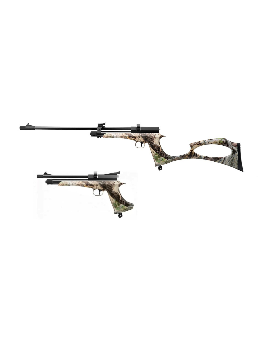 La Artemis CP2 Camo es, en realidad, ¡pistola y rifle de aire comprimido, todo en uno! La CP2 se entrega como pistola con un kit de conversión adicional para convertirla en rifle de aire comprimido. Esto permite deslizar/atornillar fácilmente la culata a la parte trasera de la empuñadura. El cañón se puede reemplazar fácilmente por uno más largo, incluido.