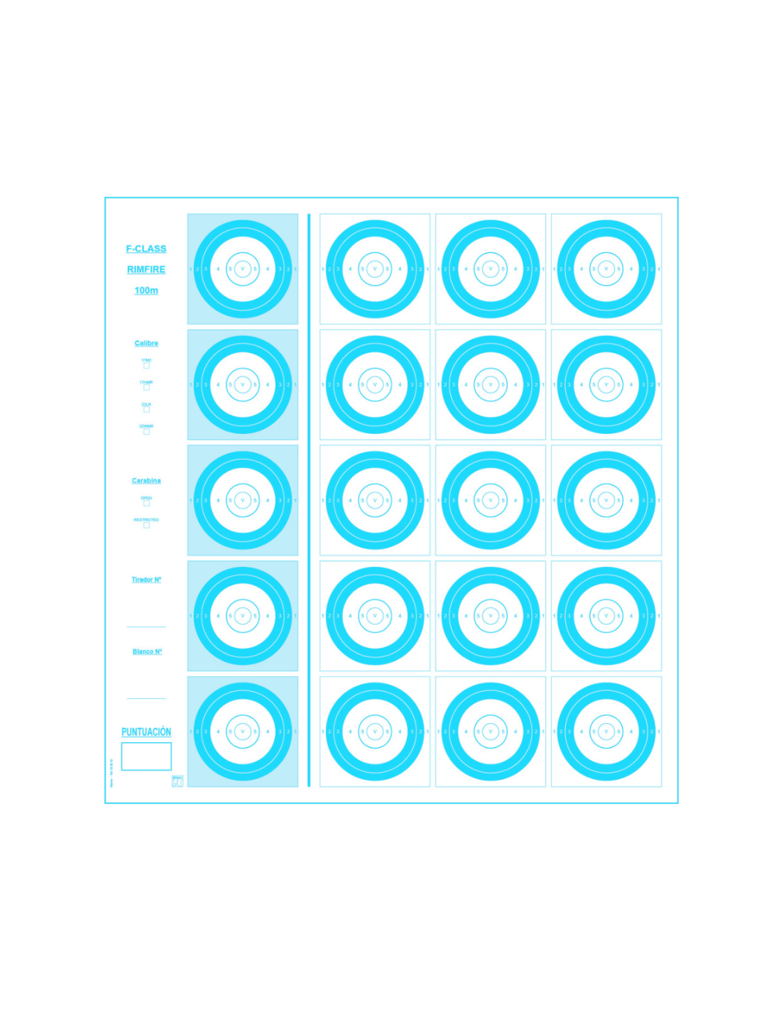 El Blanco oficial F-Class R100 color cian, fabricado por Klamer, es la referencia de máxima calidad para tiradores de precisión que entrenan o compiten en la modalidad F-Class a 100 m.