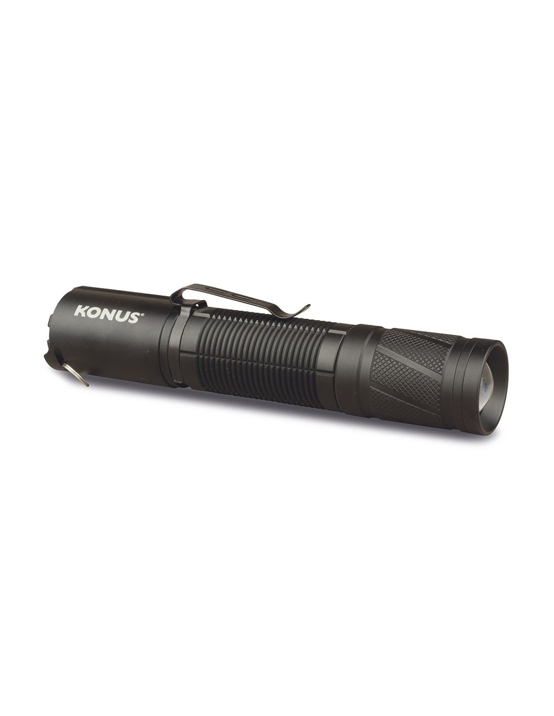 La linterna KONUS RC7 permite regular cómodamente la intensidad de luz girando el dial situado en el botón de encendido en el extremo de la linterna. También dispone de función zoom. Girando el anillo del cabezal se obtiene un haz de luz más concentrado.