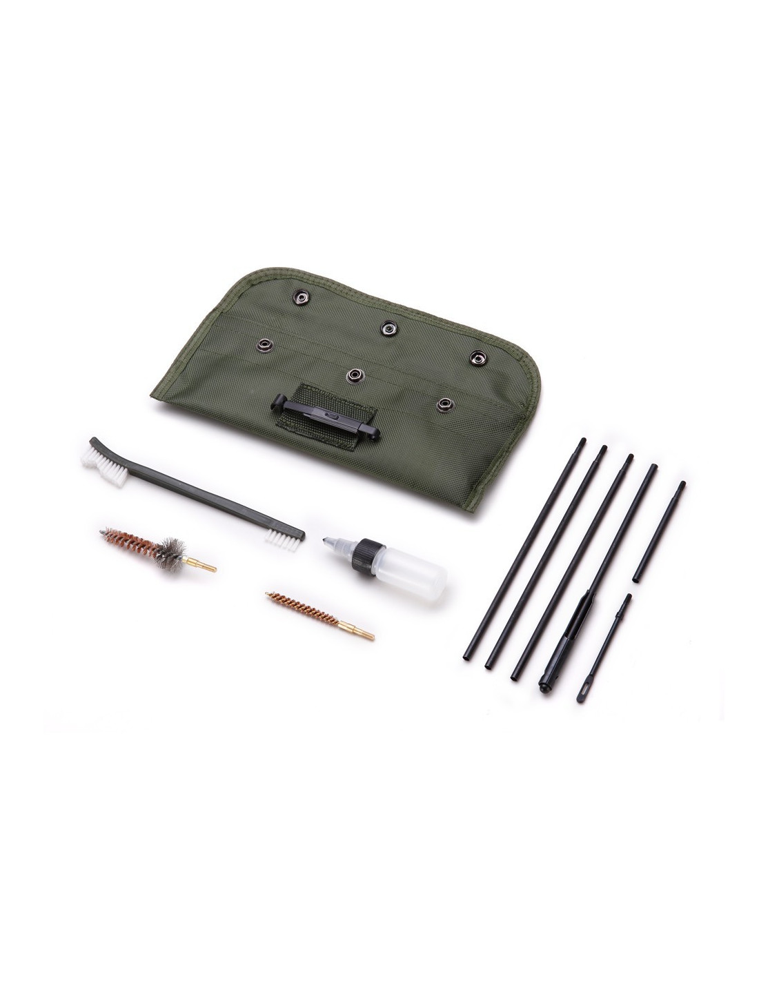 Kit de limpieza para la conservación y limpieza de armas de cal. 12 presentado en estuche de nylon verde con triple broche y dos bolsillos interiores con cierre de velcro que incluye: