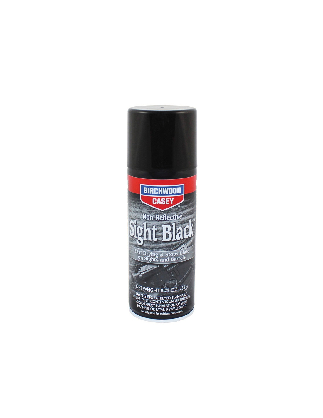 Ennegrecedor Sight Black de Birchwood Casey en formato spray de 35 gramos (1'25 oz). Idóneo para aplicar sobre el cañón o el punto de mira del arma de fuego. Es una pintura negro mate, es decir, sin brillos ni reflejos.